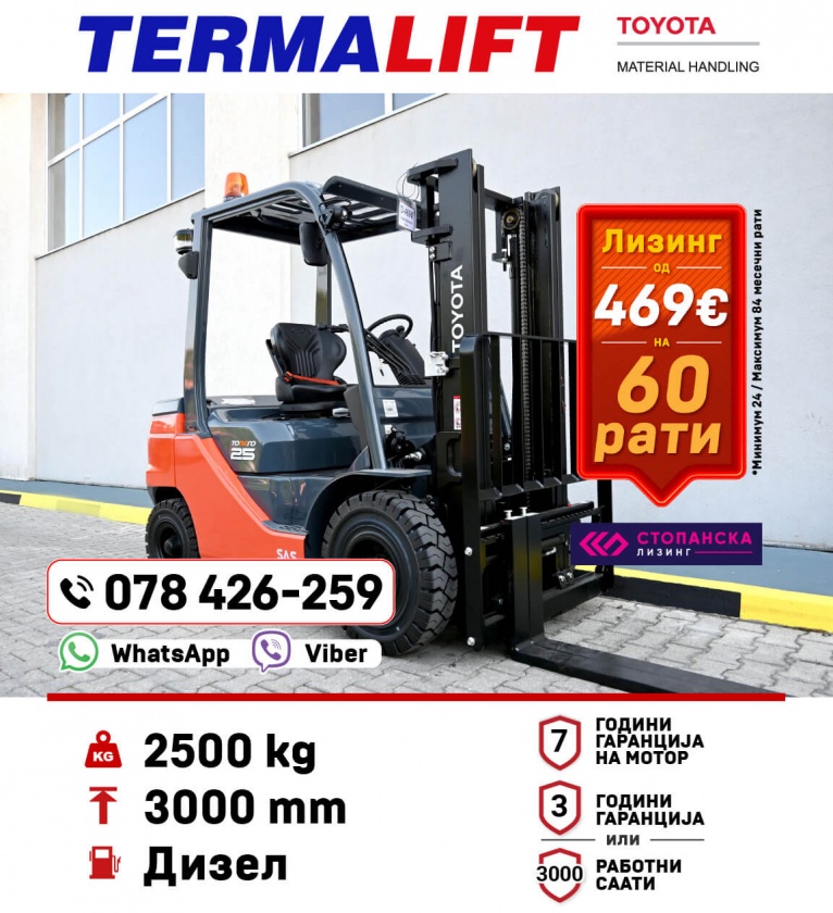 Që prej vitit 2014 Termalift u bë Distributor Ekskluziv i Pavarur i pirunëve TOYOTA për Maqedoninë, Shqipërinë dhe Kosovën dhe për 2 vjet arriti 50% të pjesëmarrjes në tregun e pirunëve të rinj!
